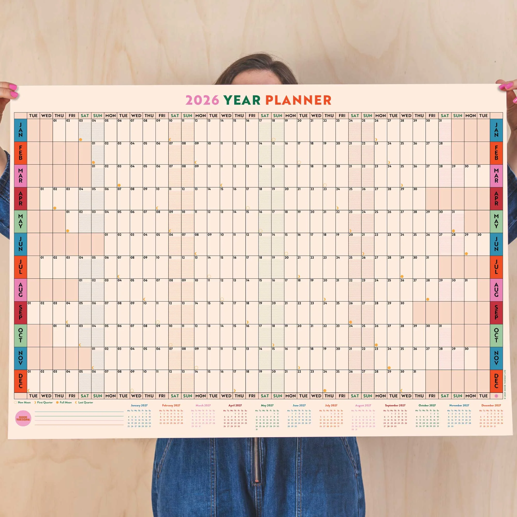 This 2026 wall planner is designed to bring a little structure and a lot of joy to your year. Featuring a colourful layout and bold monthly tabs, it gives a full view of the year ahead from January to December 2026, with a handy mini 2027 calendar at the bottom for looking ahead.