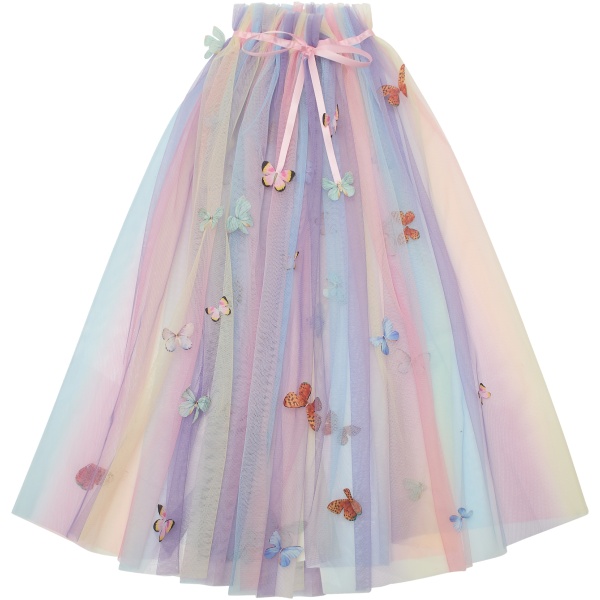 - Layers of pastel coloured rainbow tulle decorated with fabric butterflies