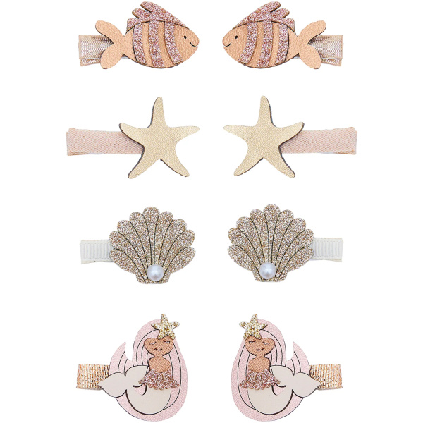 These beautifully neutral Mermaid mini clips are perfect for adding under-the-sea charm to little locks! Crafted from a shimmering mix of glitters and metallics for just the right sprinkle of mermaid magic!
