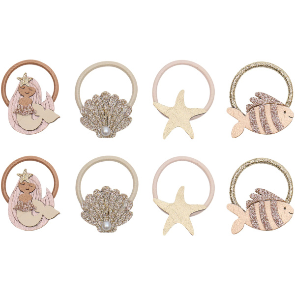 These beautifully neutral Mermaid mini ponies are perfect for adding under-the-sea charm to little locks! Crafted from a shimmering mix of glitters and metallics for just the right sprinkle of mermaid magic!