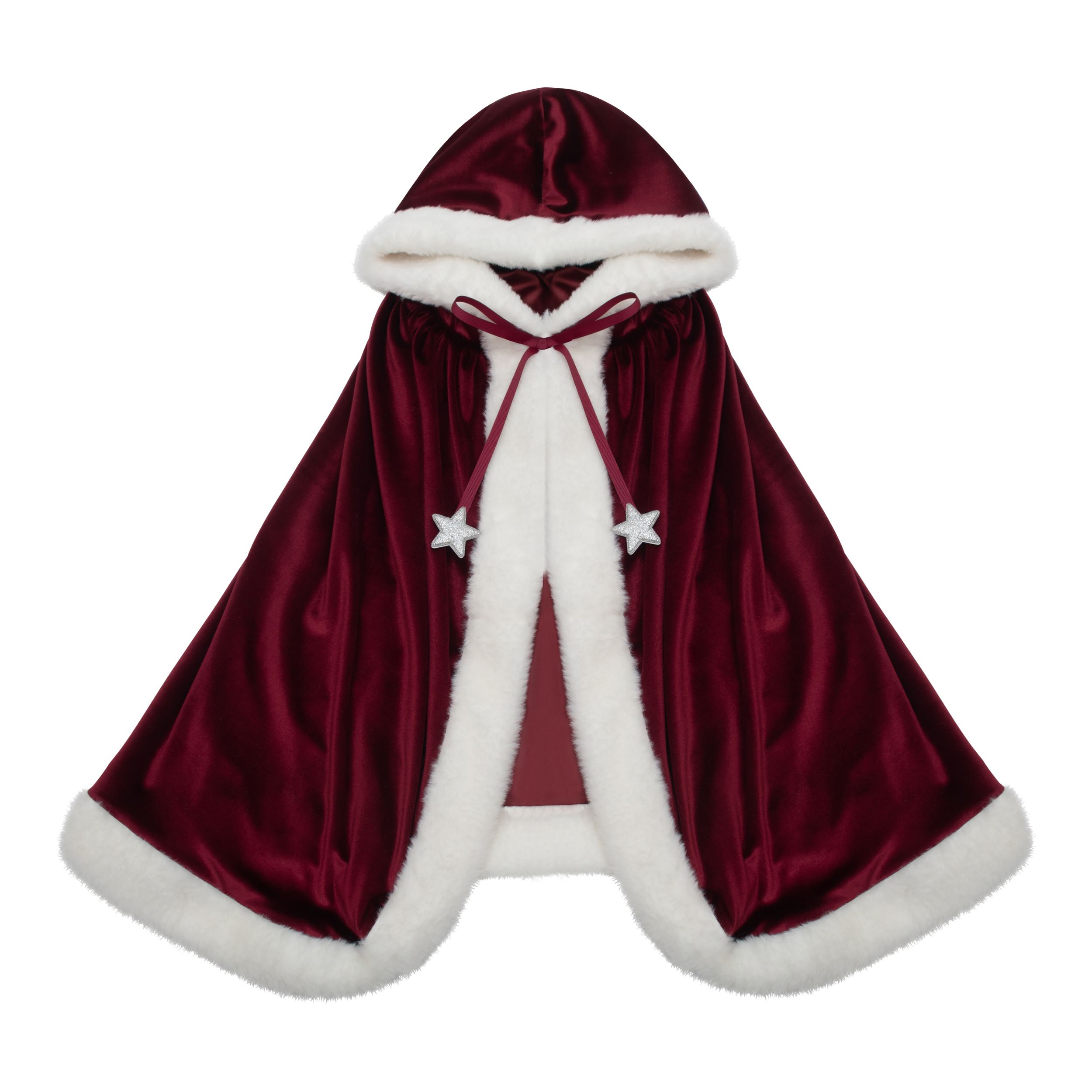 Wrap your little one in festive magic with the Mrs Claus Cape. This charming red cape features soft plush fabric, a cosy hood trimmed with faux fur, and a delicate gold bow closure for that perfect holiday sparkle. Ideal for parties, dress-up, or simply spreading Christmas cheer, it’s a whimsical winter accessory designed to delight. One size fits most children aged 3–10.