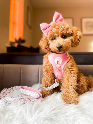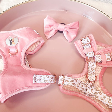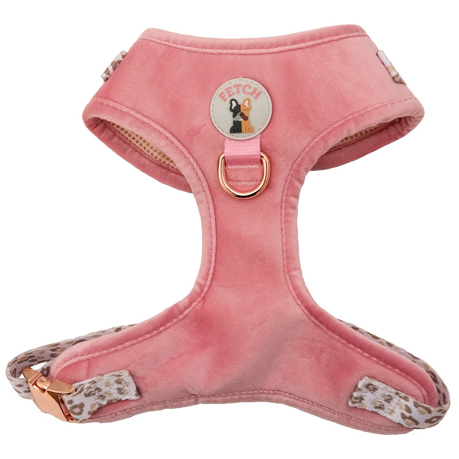 Discover our range of luxury velvet harnesses in a range of prints, including the Regina G. Features breathable material, an adjustable neck D ring for lead attachment and front D ring for loose leash walking.
